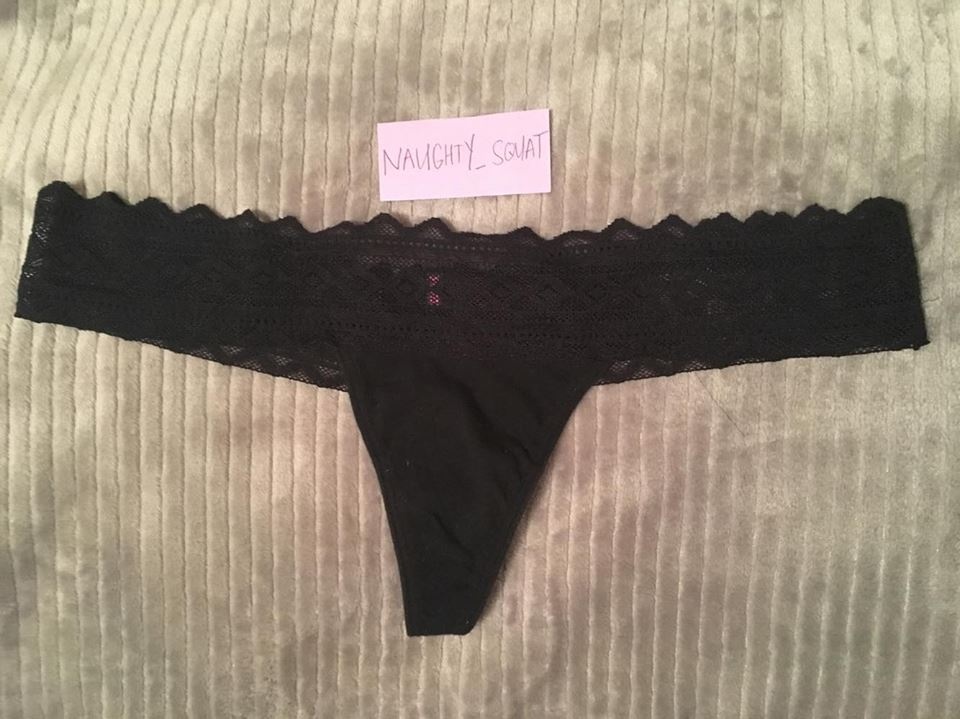Lacey black thong, shows *** stains perfectly. Specific requests? Just msg me!