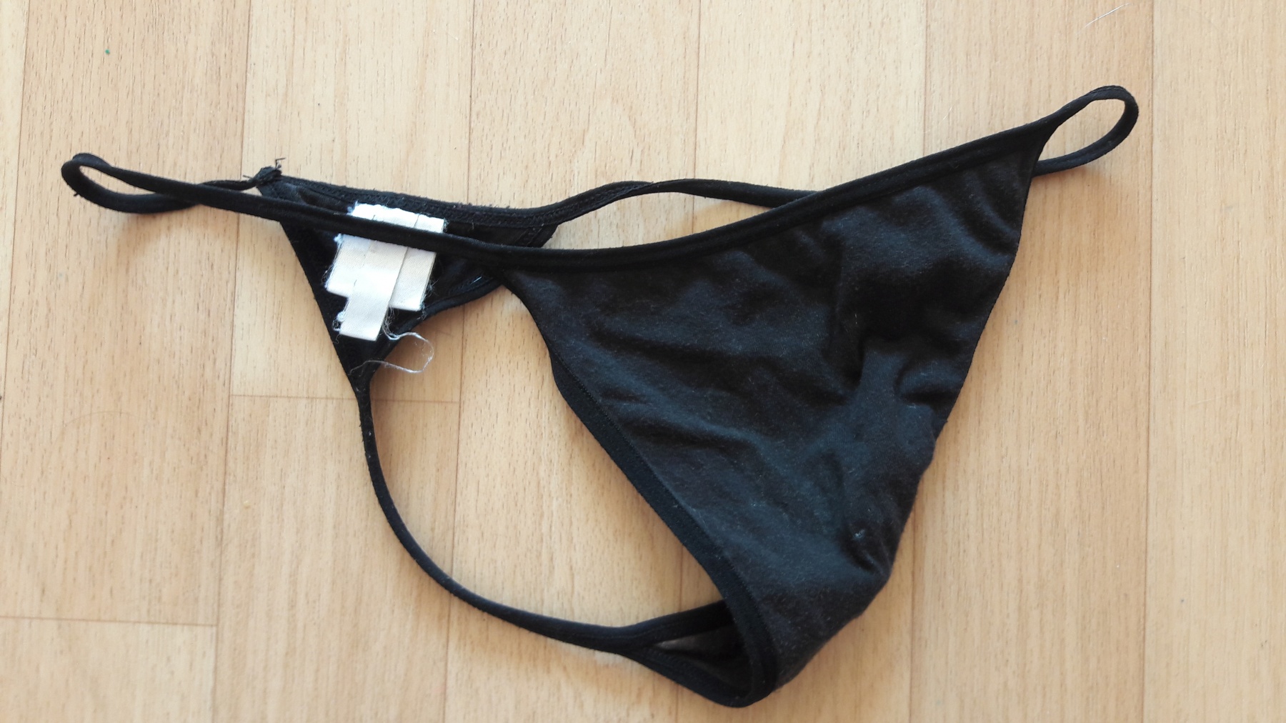Black thong. Super comfy and I definitly masturbate in this one ;) Worn two days and one night. If you want I can wear it again for you ;)If you want something extra or more Fotos just message me :)