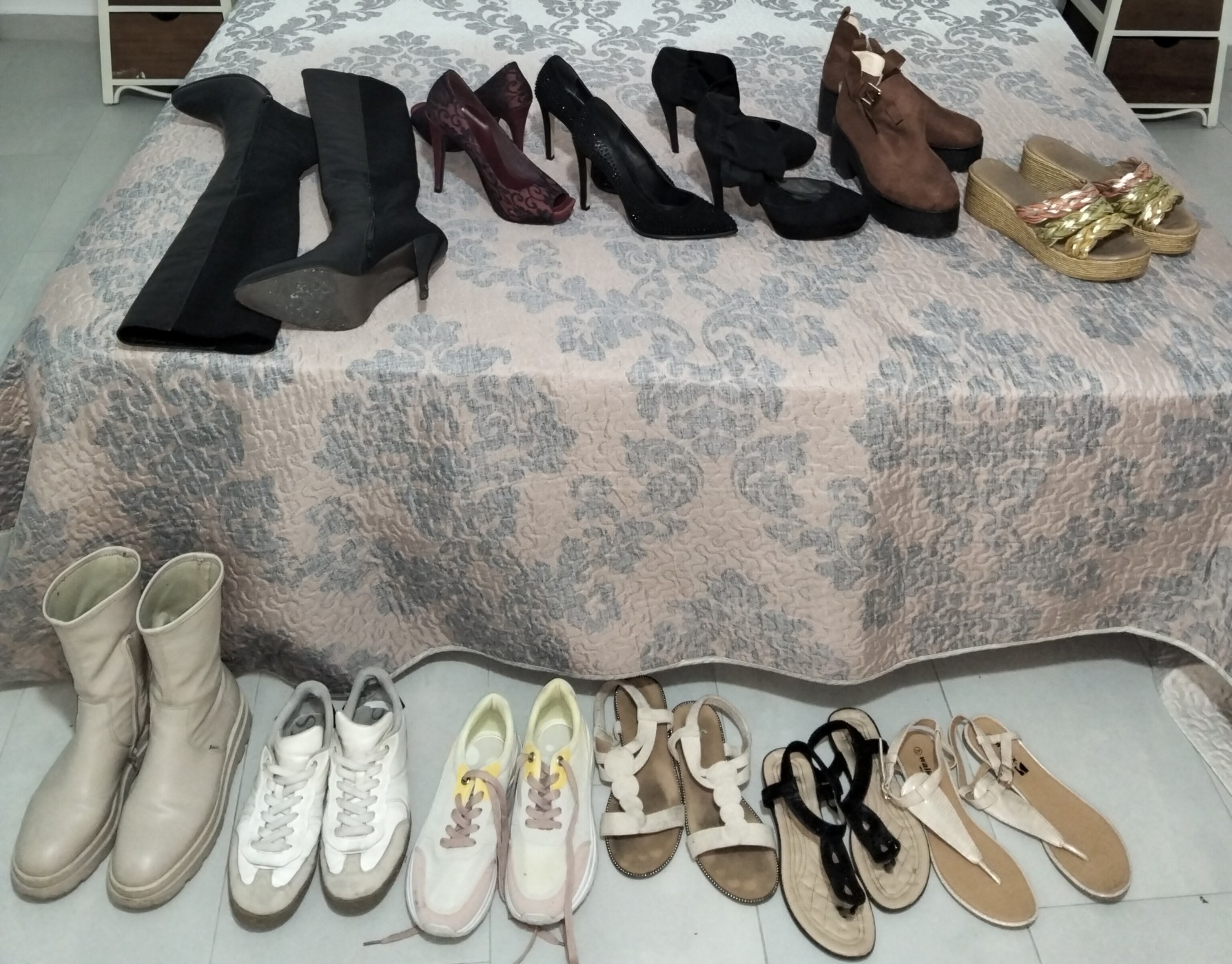 Vendidas las botas negras y los zapatos rojos. Dime cuál es tu favorito! Te va a encantar 🎀. Soy una chica que calza 40 h me encanta el calzado, masajear mÃa pies :) preguntame! EnvÃo también por vinted!
