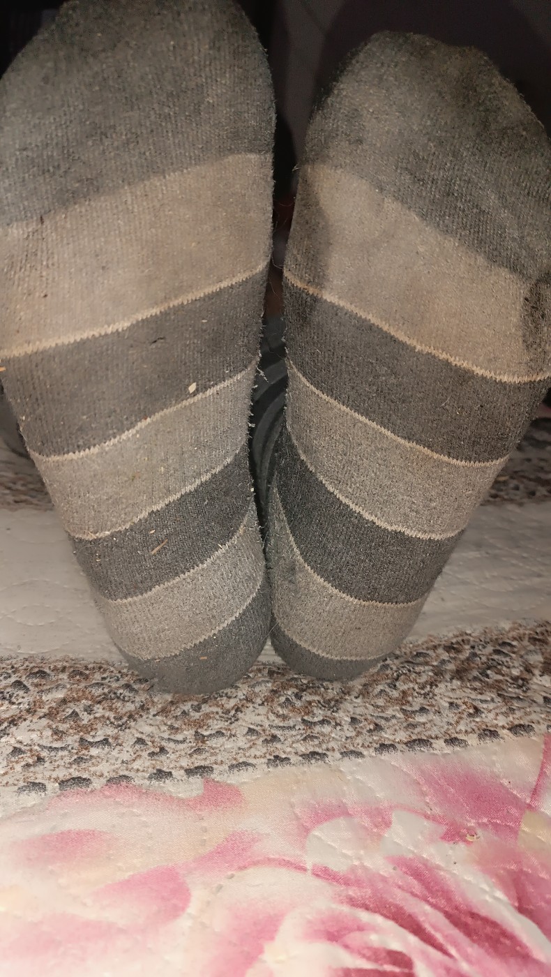 Calzettoni lunghi da uomo taglia m numero 42Usati per lavoro 3 giorni..indossati dentro scarpe antinfortunistiche sudati e bagnati..aspettano la tua bocca per essere baciati e leccati