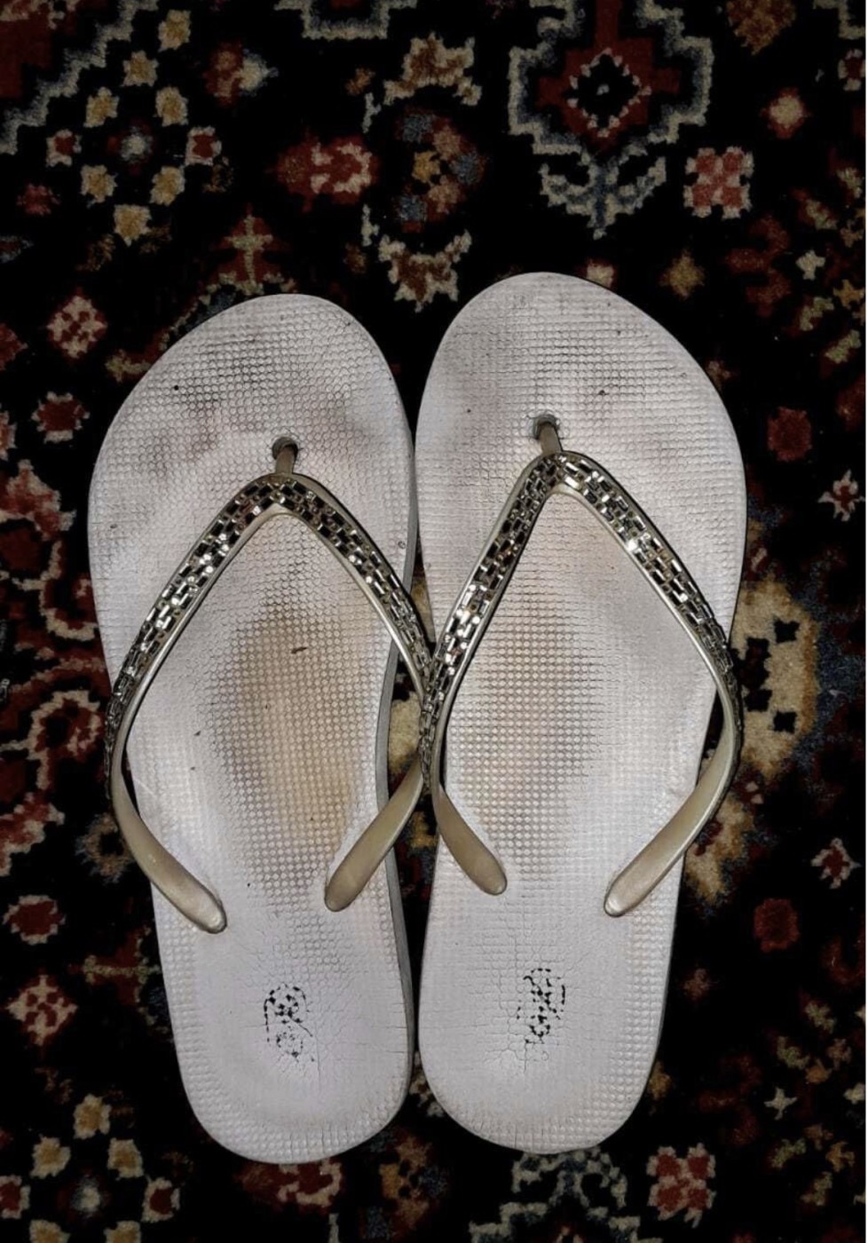 Chanclas muy usadas,hice de todo con ellas y huelen bastante q necesito deshacerme de ellas… ande mucho con ellas , me limpié , me corri…cómpralas con un video incluido de lo bien y morbosa q me quedan y lo bien q se juega con ellas?🏻?Telegram @tudiosarebelde97