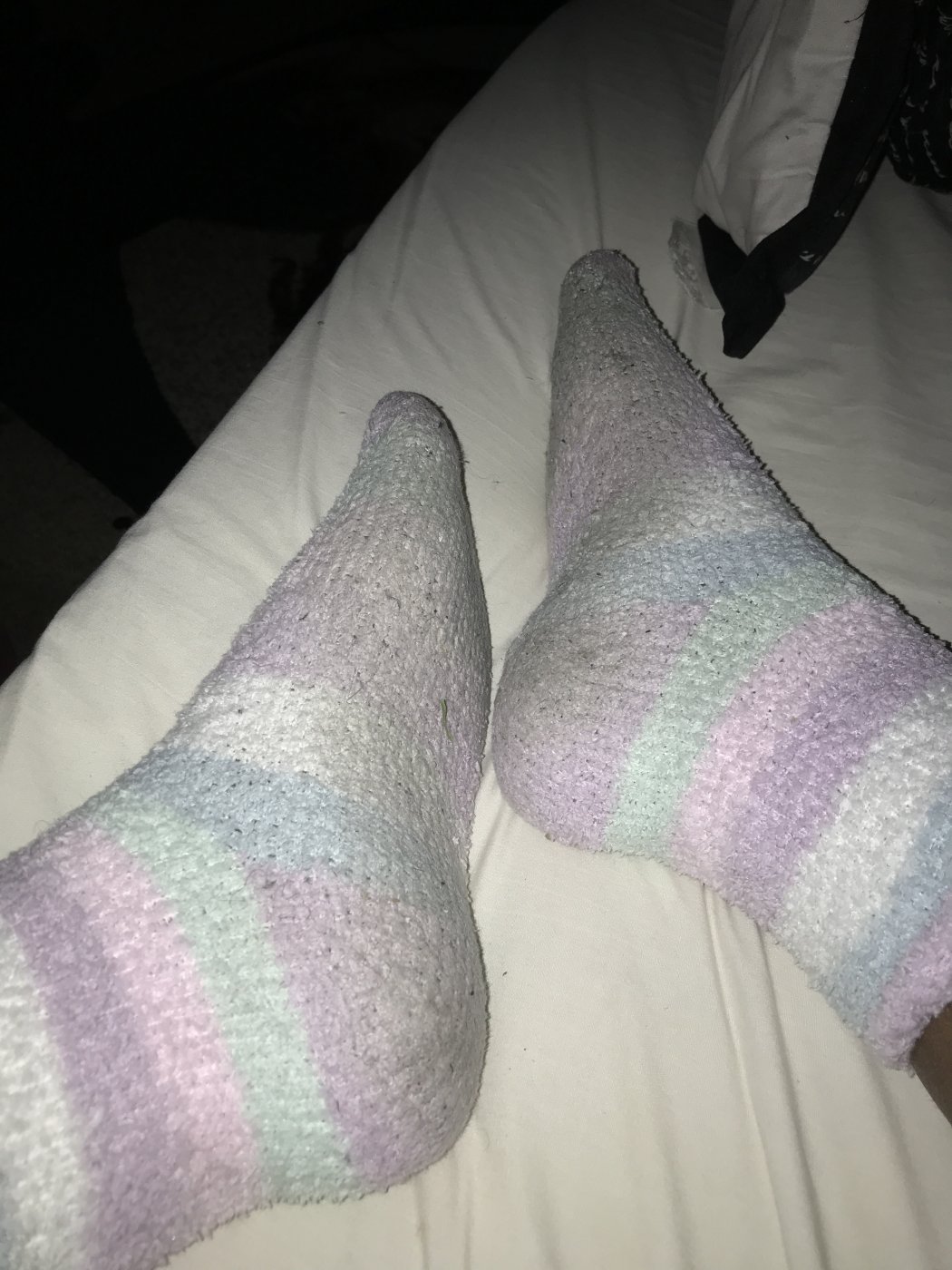Cute fluffy socks that have been worn for a long time and need a good home to go to. Anybody can have these at a reasonable price. I will wear them doing anything you’d like.😉