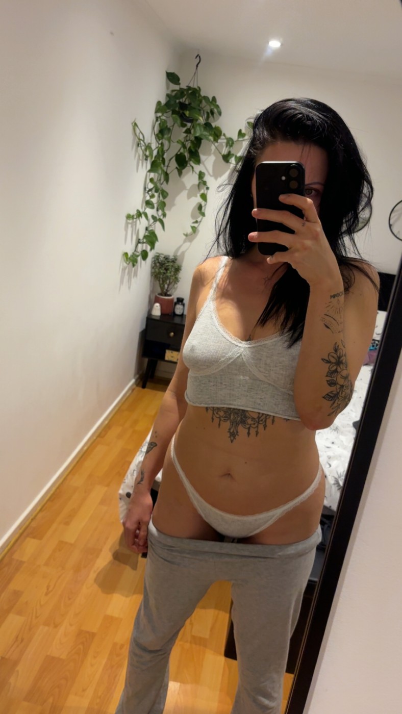 Grey cotton thong with white lace xxxMy sit around the house, comfy, cheeky wank before bed thong ðŸ¤Message for any requests