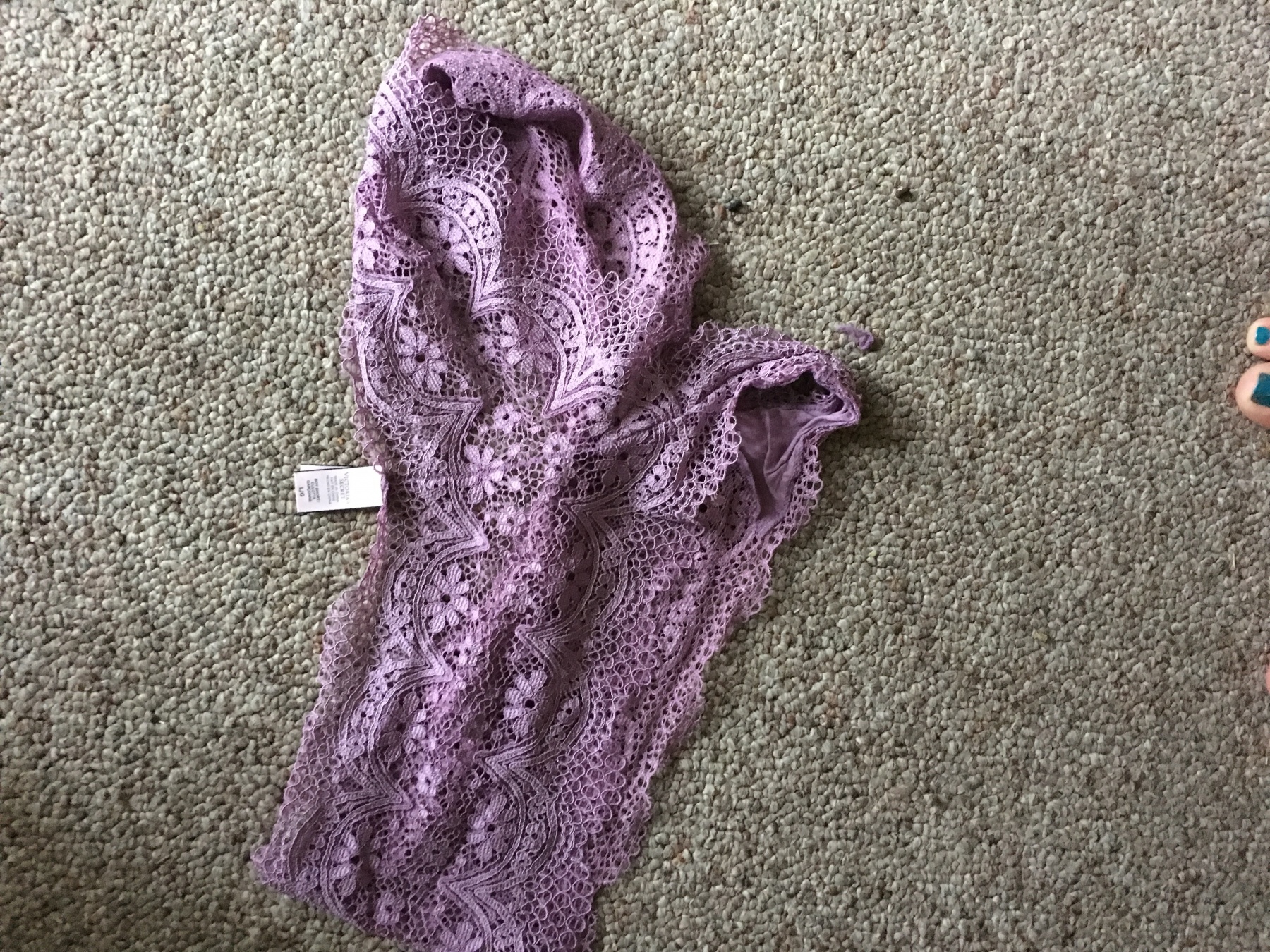 A pair of used lace panties, sheer, with black thigh highs also worn during bedroom play.