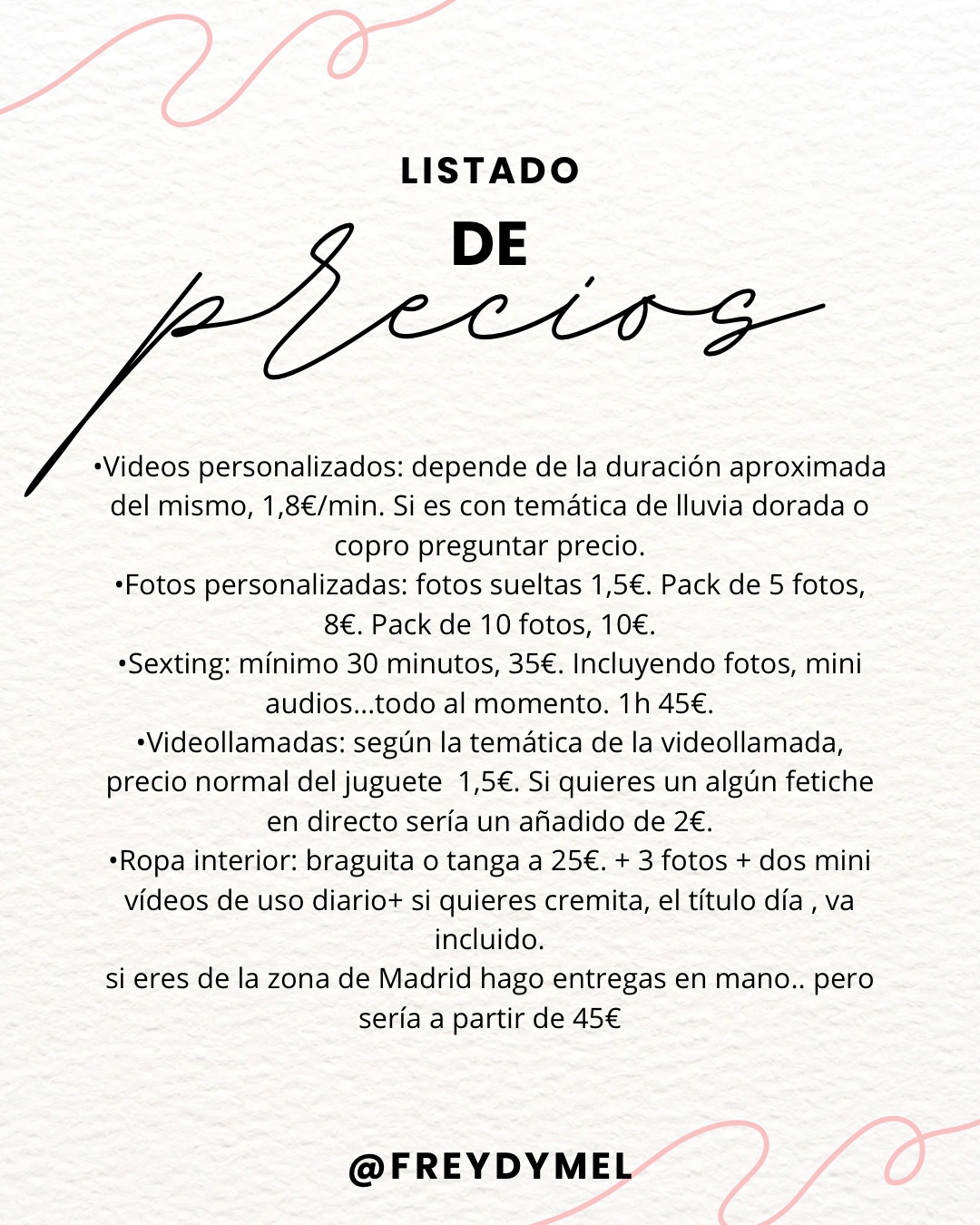 •💬???????: mínimo 30 minutos, 35€. Incluyendo fotos, mini audios…Todo al momento.