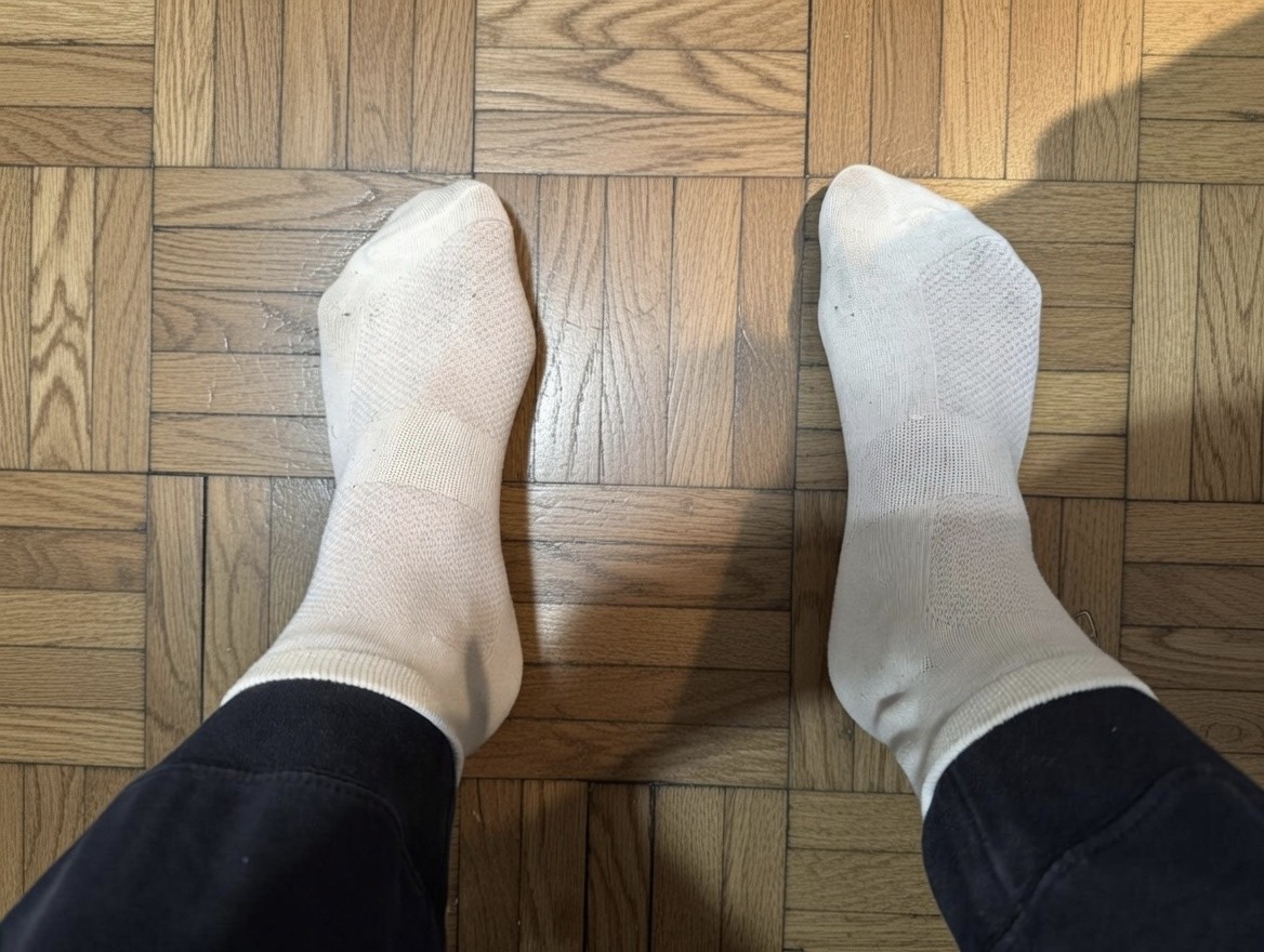 ​Si los miras de cerca, verás que están oscuros y sucios por debajo, marcados por el roce constante y el calor de mis pies atrapados en las zapatillas. Al quitármelos, el aroma es simplemente arrollador: una mezcla potente de feromonas, humedad y mi esencia más cruda tras horas de cardio.
