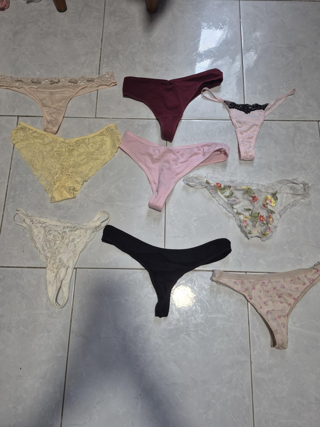 Tutte le mutandine che ho a tua disposizione. Le posso indossare da 3 giorni e farci tutto quello che mi viene richiesto. Scegli quella che preferisci e scrivimi così che siano tue. Tutte profumate aspettano solo te e di essere assaporate