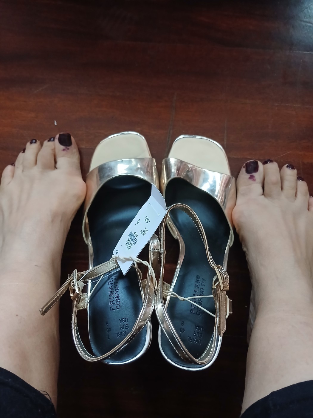 Sandalias nuevas doradas con etiqueta, te apetece estrenarlas conmigo?. Quiero calentarme contigo cielo. Las estreno contigo hasta correrme. Esroy caliente cuelo.