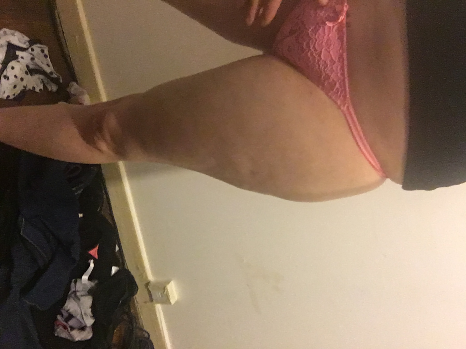Tight pink lace thong only used for sleeping in