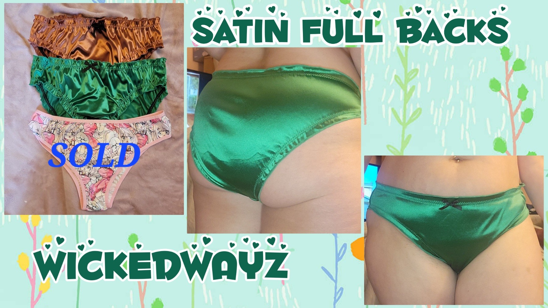 Satin panties with bow & silky Anime panties.48hr, masturbation included, pics daily and vacuumed sealed. Free Standard US shipping. Discounted International Shipping available at buyers expense. Add ons and extended wears are available.$25