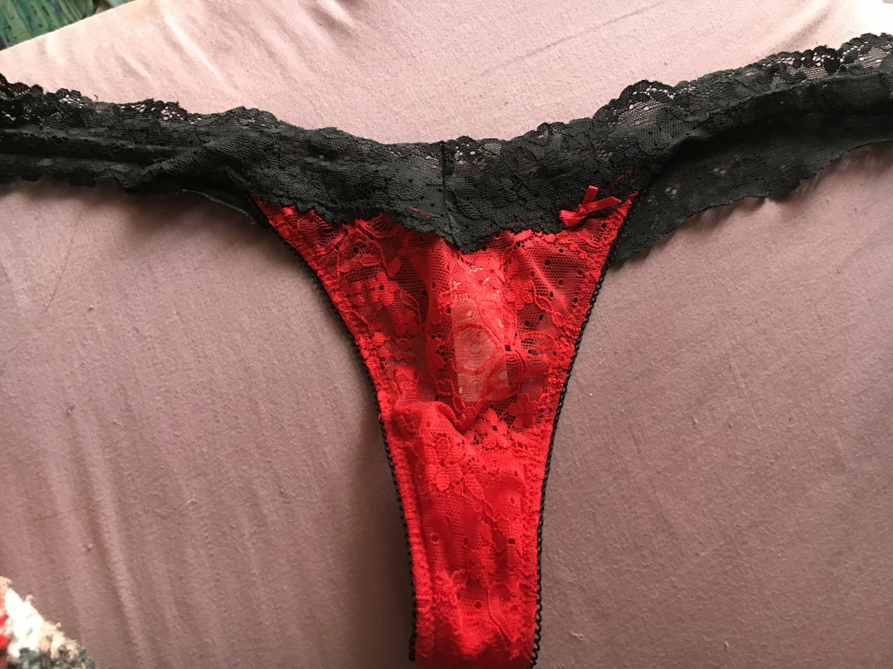 Red and Black Cotton/Lace panties worn during soccer game