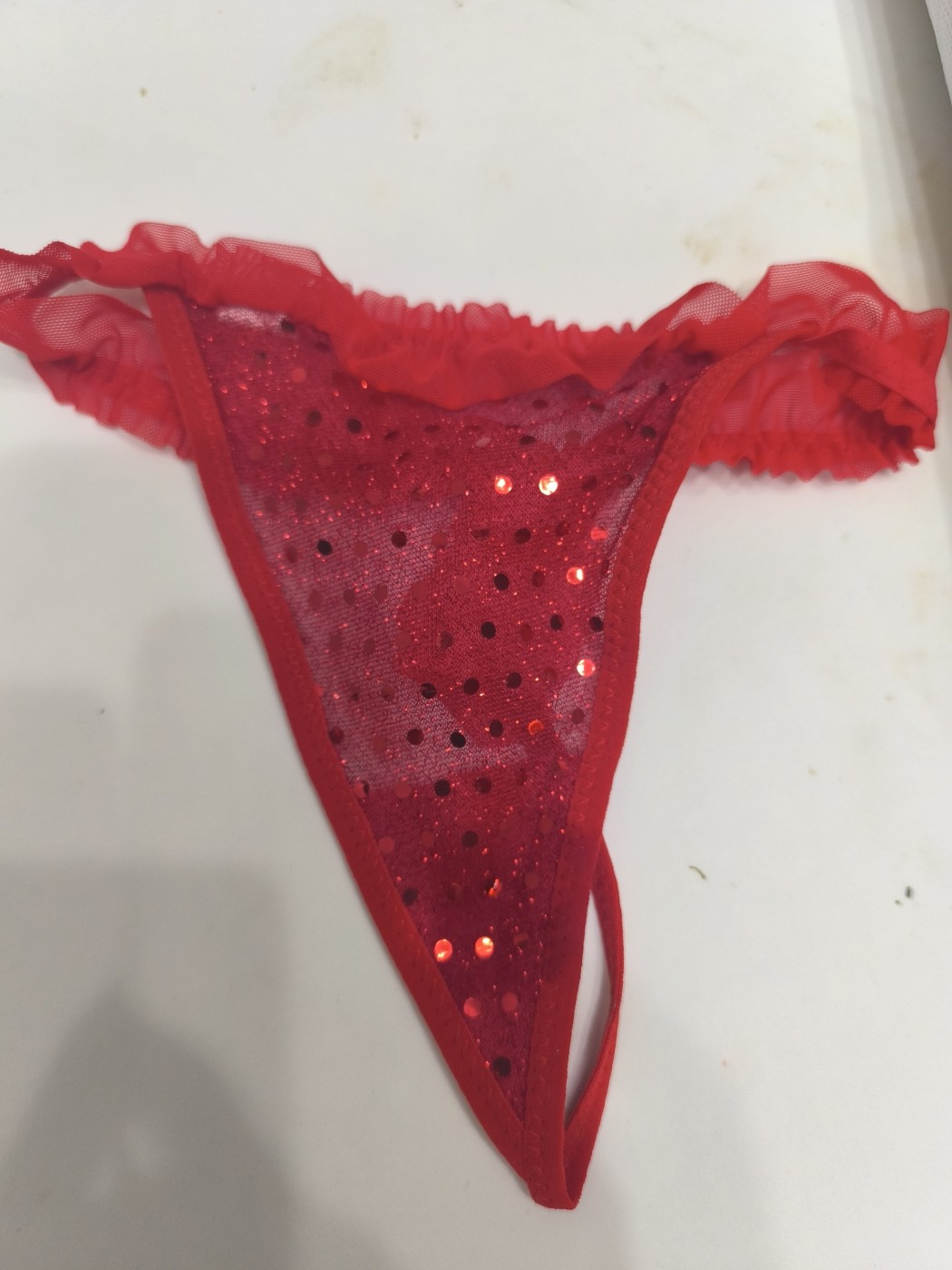 Este tanga rojo no solo es una prenda, es pura adrenalina. Es el que elijo cuando estoy especialmente juguetona y el cuerpo me pide más... 🔥 Su rejilla transparente y el hilo han estado rozando mis curvas en mis momentos más íntimos y calientes 💦. Quieres que lo deje mojadito de mi sabor para ti? 😈