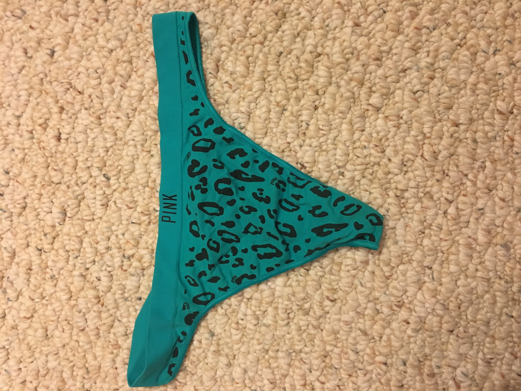 Turquoise printed thong from Victoria's Secret. Let me know how long you'd like them worn. And what activities you would like done in them!