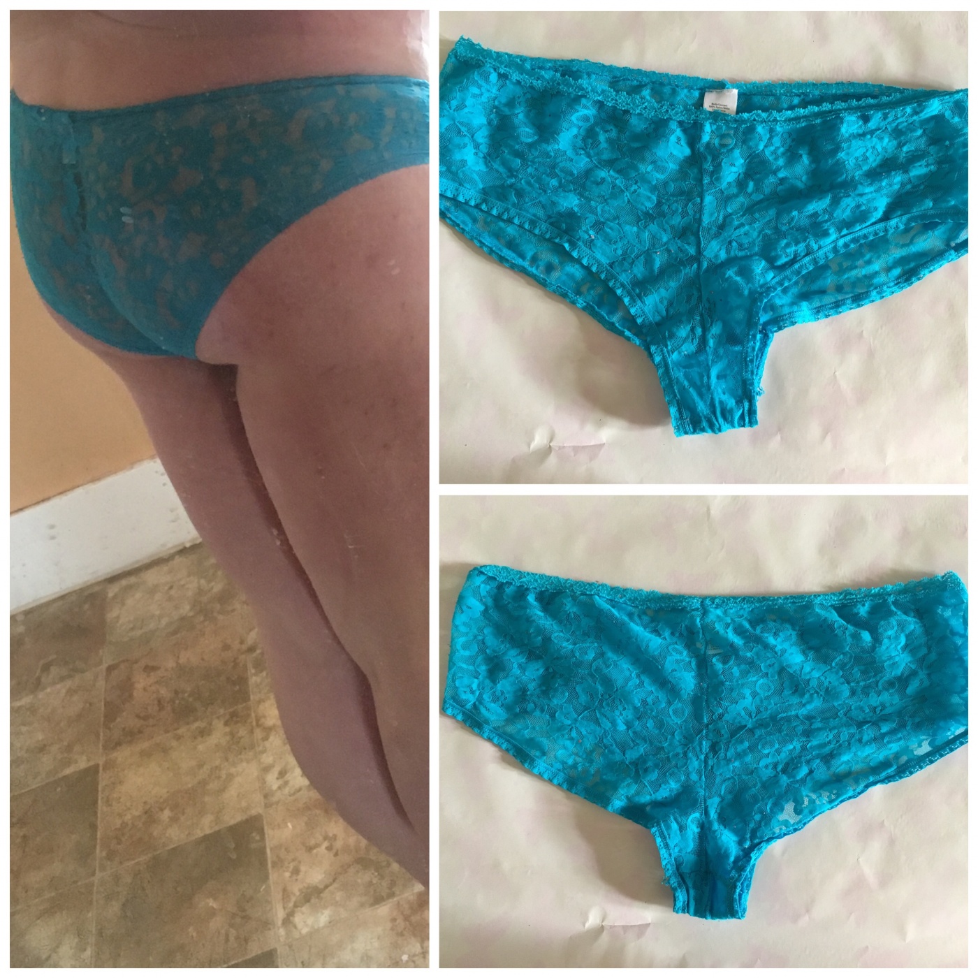 Neon blue lace, nylon pantiesSize: xl/xxl