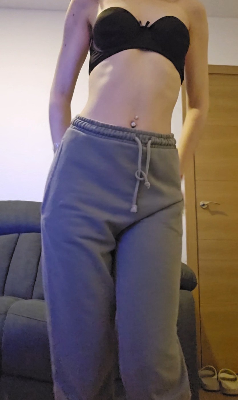 Comienzo con mi chandal deportivo, vengo de hacer ejercicio , me desnudo y cambio mi ropita interior , me pongo un conjuntito de lenceria sexy. Mi xoxito peludo y yo comenzamos a masturbarnos con el tanguita hasta ofrecerte una buena corrid@. Gimo de placer π¦π me quito el tanguita y te enseΓ±o como esta de mojaditoπ¦π