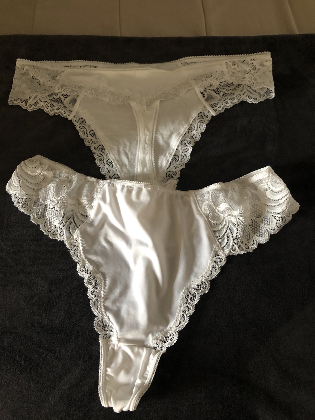 Virginal white panties - stop by and tell me how you want me to wear them for you and for how long What would you like me to do in them 😉😉💦💦Mmmm get yours and my juices going £20 each +photo of wear