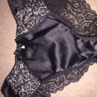 Sexy gold and black silky plus sized French knickers worn during a long day
