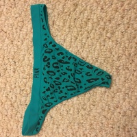 Turquoise printed thong from Victoria's Secret. Let me know how long you'd like them worn. And what activities you would like done in them!