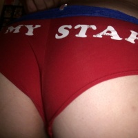 Red Victoria secret panties with blue lace trim "the back reads "oh my stars" worn for 48 hours and masturbated in