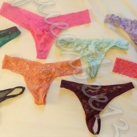 This classic, bright pink lace thong is starting to get some holes in it, it is very well loved. Available for up to 3 day wear, with most requests accepted for extra price. Starting at $25