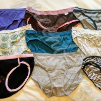 brown and pink trim cotton fullbacks that get super dirty. 24 hour wear starts at $25, with extra days and plenty of add ons available ; )