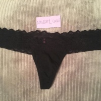 Lacey black thong, shows *** stains perfectly. Specific requests? Just msg me!
