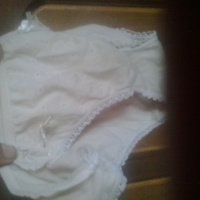 Beige panties with bows. There are tracks of excretions after masturbation.