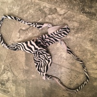 One of my favorite pairs of panties, worn out, zebra print & worn for 24 hours. ;)