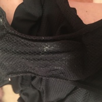 These black panties are super comfortable for working out in, which I did do earlier with a good sweat and thigh rub going on! They're part polyester, Lycra/spandex. I was in them all day at work, the gym, a self-finger session, and just chilling on the couch in just the und…