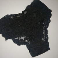 Black laced tanga, worn for a day (or more, if you want - price negotiable). Very well loved by me. Interested? Let me know! Any wishes? Just tell me! Just message me: rosespantys [ at] gmx [dot] de Only serious buyers!