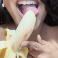 Mira como me como este plátano de la forma mas sensual. Meciéndomelo hasta el fondo de mi garganta. Al final acabo comiéndome el plátano y termino con la boquita llena de leche. Primeros planos, lengüetazos calientes y relamiéndome como lo haría contigo. Hablame a telegram y te c…