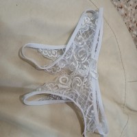 Slip aperti usati durante rapporto con gocce di ******ing ai lati, con tutto il sapore e odore In pizzo bianco. Tutte bagnate