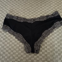 In vendita mutandine brasiliane color nero e pizzo, usate per momenti di divertimento, utilizzabili per le fantasie più nascoste e profonde