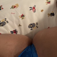 Blue lace thongs, size M, worn while masturbating with the bullet vibrator and then slept in for at least 8 hours