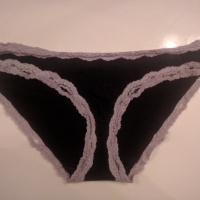 You choose the color, I will wear them for you for 24 hours. Message or Email for questions: [email] Click my profile and Shop to see the other panties. Colors: Black with White dots and lace (cheekies), blue with white lace (cheekies), Black with black lace and white dots (…